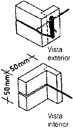 Las esquinas se arriostran diagonalmente. En áreas sísmicas es recomendable que la base de las estructuras descansen sobre el muro de cimentación a través de un mortero suelo-cal.