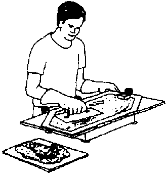 1. Coloque la lámina plástica sobre la mesa vibradora