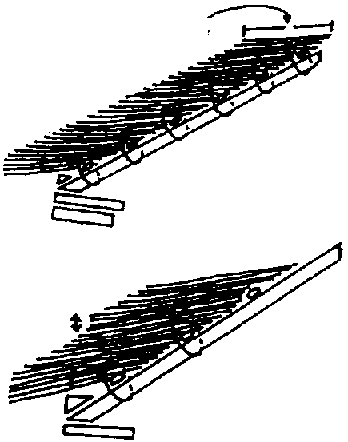 Es esencial colocar a nivel del alero y fijada en toda su longitud una tabla de sección en cuña, 35 mm más gruesa que los listones superiores, con el fin de curvar la primera hilada de paja, tensionandola y haciendo que el resto del techado quede fuertemente compactado.