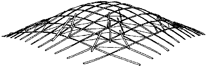 Para construir estructuras espaciales curvas usando barras relativamente delgadas, se aplica el mismo sistema de catenarias invertidas descrito en "Bóveda de Cañon". La forma de ésta retícula laminar por lo tanto no se calcula, más bien se determina usando modelos suspendidos (ej. con una red de cadenas). Varias de éstas estructuras usando tiras de bambú se han desarrollado y construidos en un proyecto conjunto del "Institute of Lightweight Structures, Stuttgart, Alemania", y la "School of Architecture", en Ahmedabad, India.