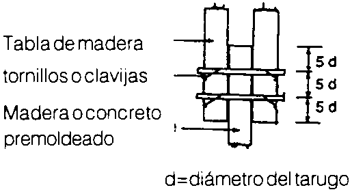 Una alternativa más apropiada, desarrollada en la Universidad de Nairobi, Kenya, es el uso de tarugos, que son colocados en huecos perforados. Si es estructuralmente posible, es mejor usar tarugos de madera que son más baratos y no se oxidan. En todo caso se debe prever, que no puedan soltarse, fijándolos con clavos insertados desde diferentes ángulos.