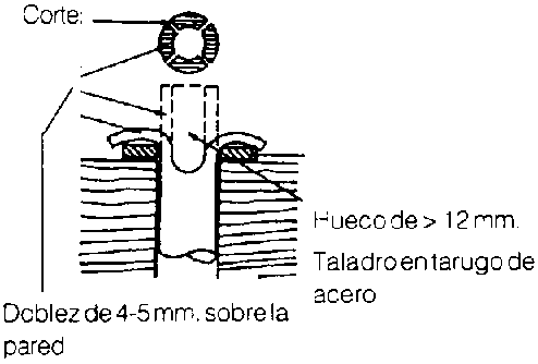Alternativamente, se pueden perforar huecos en los extremos de los tarugos de madera, para insertar cuñas de madera dura, que presionan el tarugo en su lugar. así la perforación en la que se inserta el tarugo puede ser un poco más grande, facilitando y acelerando el trabajo.