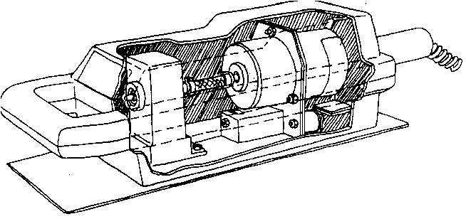 Vibrador desmontable, que trabaja con un suministro de corriente continua de 12 voltios (cargador de batería ordinario o batería de carro). Puede ser empleado para hacer bloques de concreto, tejas, elementos para ventana, y cualquier otro producto de concreto, así como tubos para agua y tejos para techado de fibra concreto.