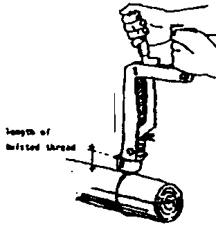 Dispositivo operado a mano empleado para atar alambres de acero galvanizado de 2 a 5 mm. de espesor alrededor de cualquier objeto, pero principalmente alrededor de conexiones de madera y cañas de bambú. La herramienta estira el alambre, tuerce los dos extremos y corta el alambre sobrante, dejando una pieza torcida de 3 cm. que es doblado o cubierto con un pedazo de tubo de plástico.