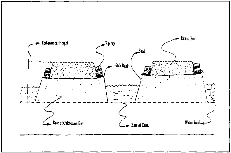 Figure 36: Cross-section of a Canal, Embankment and Raised Bed System.