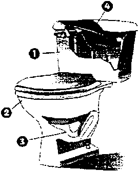 Low-Flush Toilets. Conventional toilets use 15 to 201 of water per flush, but low-flush toilets use only 61 of water or less. Since low-flush toilets use less water, they also reduce the volume of wastewater produced. A schematic of a low-flush toilet is shown in Figure 43. Even in existing residences, replacement of conventional toilets with low-flush toilets is a practical and economical water-saving alternative.