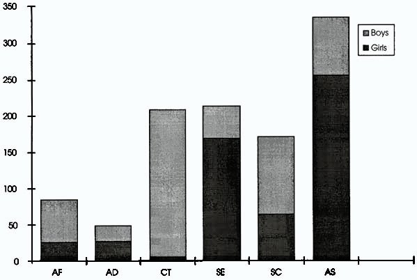 The survey overall reflects the dichotomy in girls' participation in education in Seychelles. At primary level they are ahead academically and have plenty of ambition but by the end of secondary education, as we shall see, they are increasingly opting for sex-stereotyped courses and are being over-taken by the boys.