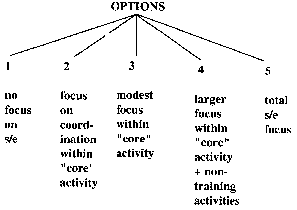 As we have suggested in the two previous chapters, we should not expect to find a single model of the most suitable VTI response to the pressures to reorient towards self-employment Different VTIs will necessarily reflect different existing institutional realities and intended policy imperatives. It will be necessary for planners at both institutional and national level to determine the appropriate degree of self-employment focus in each circumstance. The options available may range from no change at all to a total reorientation towards preparation for self-employment. This range of options can be presented in a simplified form by the below decision tree: 2