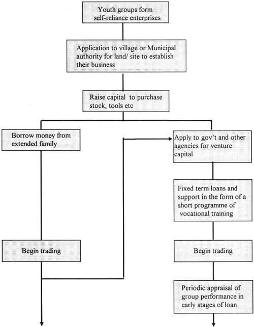 According to the municipal officer, no training has been made available to groups due to a shortage of funds. However after a thorough survey of needs a programme should be provided, but both the survey and subsequent training would depend on the allocation of funds from sponsors. In addition to the shortage of funds, groups suffer from problems of sustainability due to trading difficulties. Youths form groups in the hope that financial support will be forthcoming only to find that the only assistance they receive is a plot of land with no facilities. The first hurdle is therefore to establish their presence by obtaining tools and materials to begin trading.