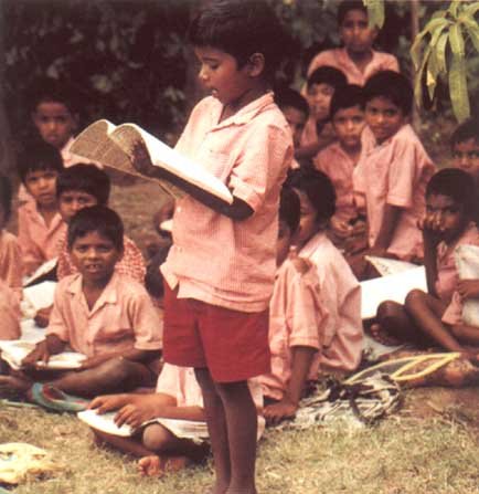 India has declared that it will provide Education for All by the year 2000. This in itself is a huge undertaking, and will involve expansion of early childhood care and development, universalisation of elementary education, reduction in literacy, and provision of opportunities to maintain, use and upgrade education. Improving the content and process of education should be a high priority, 'to better relate to the environment, people's culture and with their living and working conditions, thereby enhancing their ability to learn and cope with the problems of livelihood and environment'. A recent report by the National Advisory Committee (1993), however, looks at the 'burden of learning' in the education system and the main problems associated with it, namely the emphasis on an education to gain elite qualifications, rather than a competence for doing useful things in life. This report states that 'both the teacher and the child have lost the sense of joy in being involved in an educational process. Teaching and learning have both become a chore for a great number of teachers and children,...the majority of our school-going children are made to view learning at school as a boring, even unpleasant and bitter experience'. Competency levels in reading, writing and numeracy of primary school children are estimated to be very low; at most only 30% of children have adequate competencies in these areas. Undue importance has been given to 'memory', instead of developing 'thinking' capabilities. To be effective, rural primary schools should equip the students to face the realities of the environment in which they live, and this is not being achieved in the current education system.