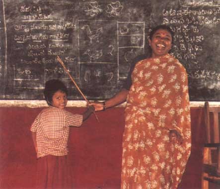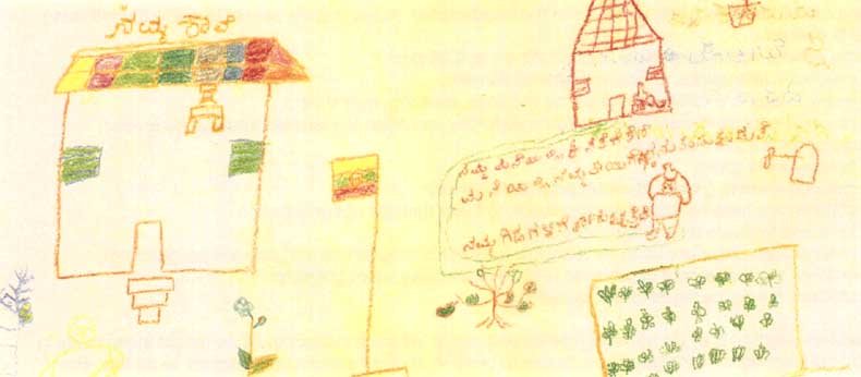 Most of these parents are not involved in school activities and they only visit the school when they take or collect their children or whenever they are sent for by the school. The illiterate parents say that they are fully occupied with their own work and find it difficult to make time to be involved with school activities. They agree that it is important for them to be involved in their children's schooling but are unable to say why they think this. Generally they are satisfied with their children's schooling. Pupils drawings from the mapping activity revealed that few of them could write basic Kannada words so how can parents be satisfied with such a situation?. In response to this question the parents said that their own educational levels were very low so they are 'not in a position to judge the level of learning of their children'. All they know is that at school their children should acquire 'wisdom and knowledge and become a good person'.