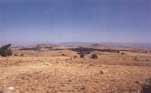 The village lies in a remote area approximately 17 kms along a dirt track from the main Addis Ababa-Debre Markos road (Photo 1). The majority of families are engaged in traditional, subsistence agricultural practices. The average farm size per family is around 1.5 hectares and approximately 40% of the farmers are landless. There are between 140-200 families in the village (although the population was estimated at around 3,361) and the average family size is seven persons. There is no electricity or sanitation in the village and four stand pipes provide poor quality water. Men are in charge of all agricultural activities and women have economic control of the household. Both men and women are involved in farming. Literacy rates are low and estimates were given of between 5% - 25% of the adult population over 25 years of age being literate. Major social problems identified in the village were, health problems (malaria, worms, TB and eye diseases); no health centre; no electricity; no higher education secondary school; no agricultural banking, credit or savings group; poor transport; and, no telephone or post office. Most of the community follow the Ethiopian Orthodox Church.