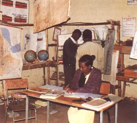 Despite the apparent success of the polytechnic curriculum the pilot programme was abandoned late in the 1980's. In the late 1970's school pedagogical centres (SPC) were established in each district and soon after SPCs were set-up in all schools to support the classroom teaching and learning process. The SPC was to enable teachers to prepare 'prototype teaching aids - as much as possible from locally available materials - giving short-term training to teachers and making informal studies of the awraja (local) environment and culture as a basis for adapting the curriculum, in social science in particular, to the locality.' (ICDR, 1993).