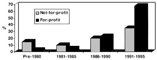 (c) The period of rapid economic liberalisation. The number of for-profit PSTIs established between 1991 and 1995 increased dramatically. Over two-thirds of the 49 for-profit centres surveyed were established during this period (although there was relatively little growth in the predominantly rural albeit relatively affluent, Kilimanjaro Region). Since 1992, the government has actively promoted the development of the private sector throughout the economy including post-primary education and training provision.
