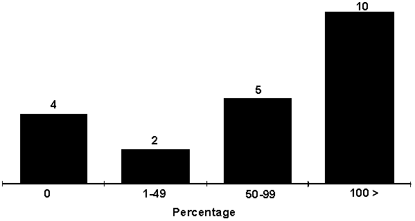 Detailed information was not requested on turnover, costs and profits. However, rough estimates have been derived on the basis of the information that was requested on enrolments, course fees and total average monthly operating costs. Nearly half of the survey had operating profit margins of over 50 per cent in 1996. The least profitable centres are generally those that have been recently established as well a group of 2-3 centres that have failed to flourish in increasingly competitive markets for training services.