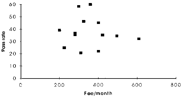 As noted earlier, the profit margins on short computer courses can be very high and, undoubtedly, it has been the prospect of earning such high returns that has attracted so many non-registered computing PSTIs into the market. However, most of these centres have not attracted large numbers of students mainly because of their small size and invisibility. In particular, it is difficult for them to market themselves widely because of high advertising costs coupled with restrictions imposed by the government-owned media on the placement of advertisements by non-registered PSTIs. In such circumstances, one would normally expect serious price-cutting to occur. Surprisingly, however, the course fees charged by the majority of these centres are in the same price range as registered PSTIs. Only the lower quartile fee is significantly lower (see table 4.13). While costs for both groups are likely to be quite similar (office rents in the city centre, instructor salaries, and cost of computers), with such high margins, there should still be considerable scope for non-registered centres to sell cheaper courses.