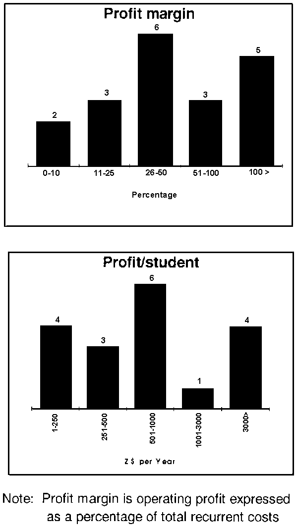Figure 4.10: Profit margins and profit per student among survey PSTIs, 1996