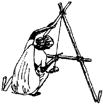 STEP 1 Tie the poles very tightly together to make the shape of a letter A. Hang the stone from the top of the A-Frame, making sure the stone hangs below the cross bar. STEP 2 Holding the frame upright, mark with two sticks exactly where the poles touch the ground. When the stone stops moving, mark where the string crosses the cross bar. Turn the A-Frame around, placing the poles in exactly the positions marked by the two sticks. Again mark where the string crosses the cross bar.