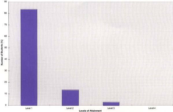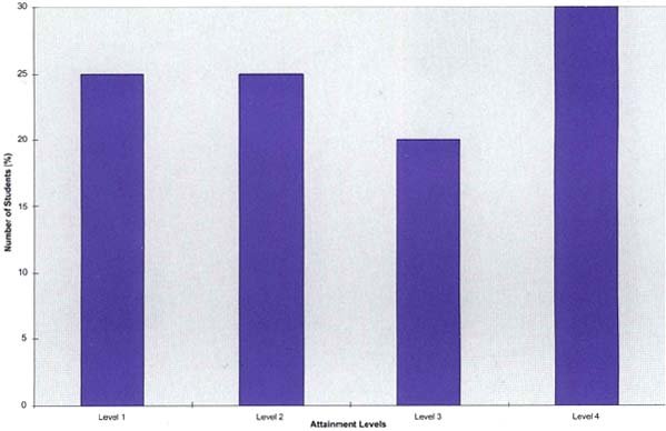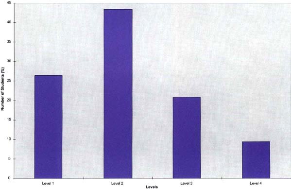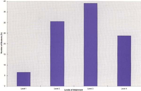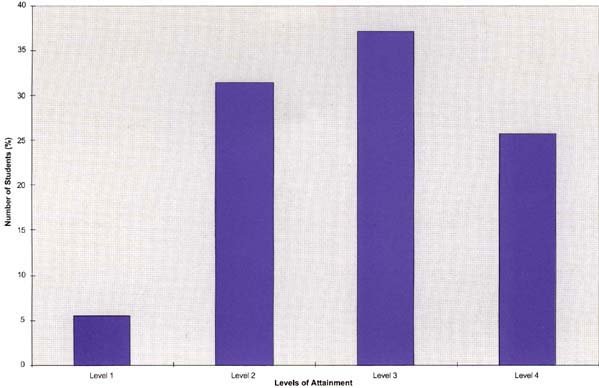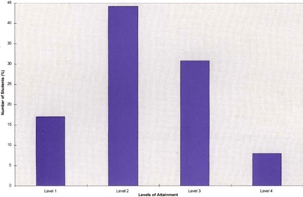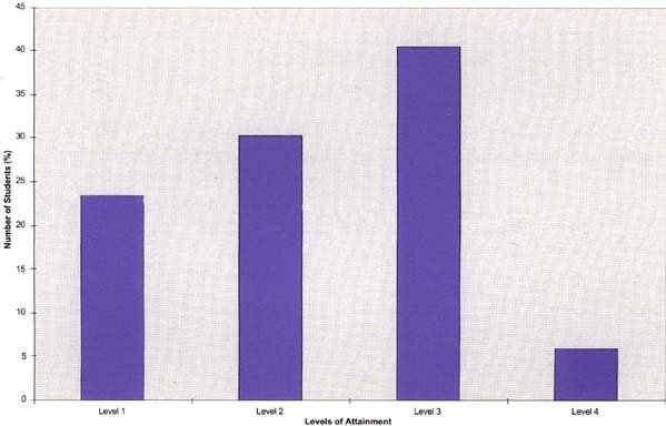 Figure 1 shows that 22 percent of children achieved Level 1. 38.8 percent of children achieved Level 2 while 27.7 percent achieved Level 3. Only 11.1 percent of children achieved Level 4.