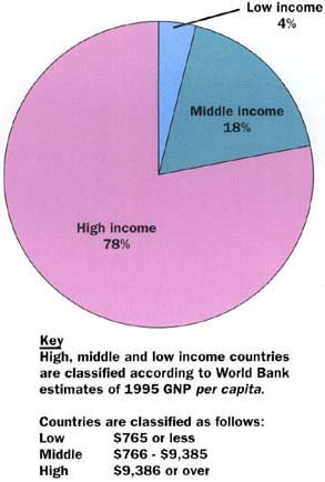 Commercial energy use refers to the use of oil, natural gas and solid fuels, but excludes the use of firewood and charcoal.FIGURE 12 - Commercial Energy Use, by Income Group of Country, 1994Source: World Development Indicators 1997.