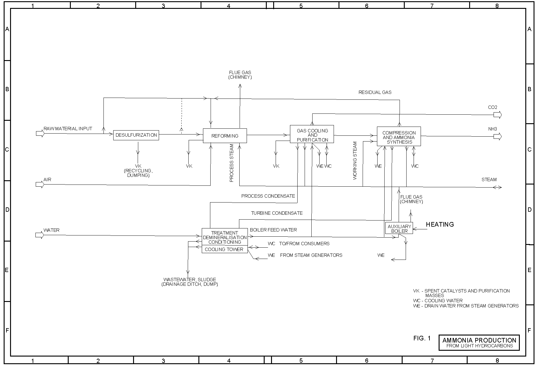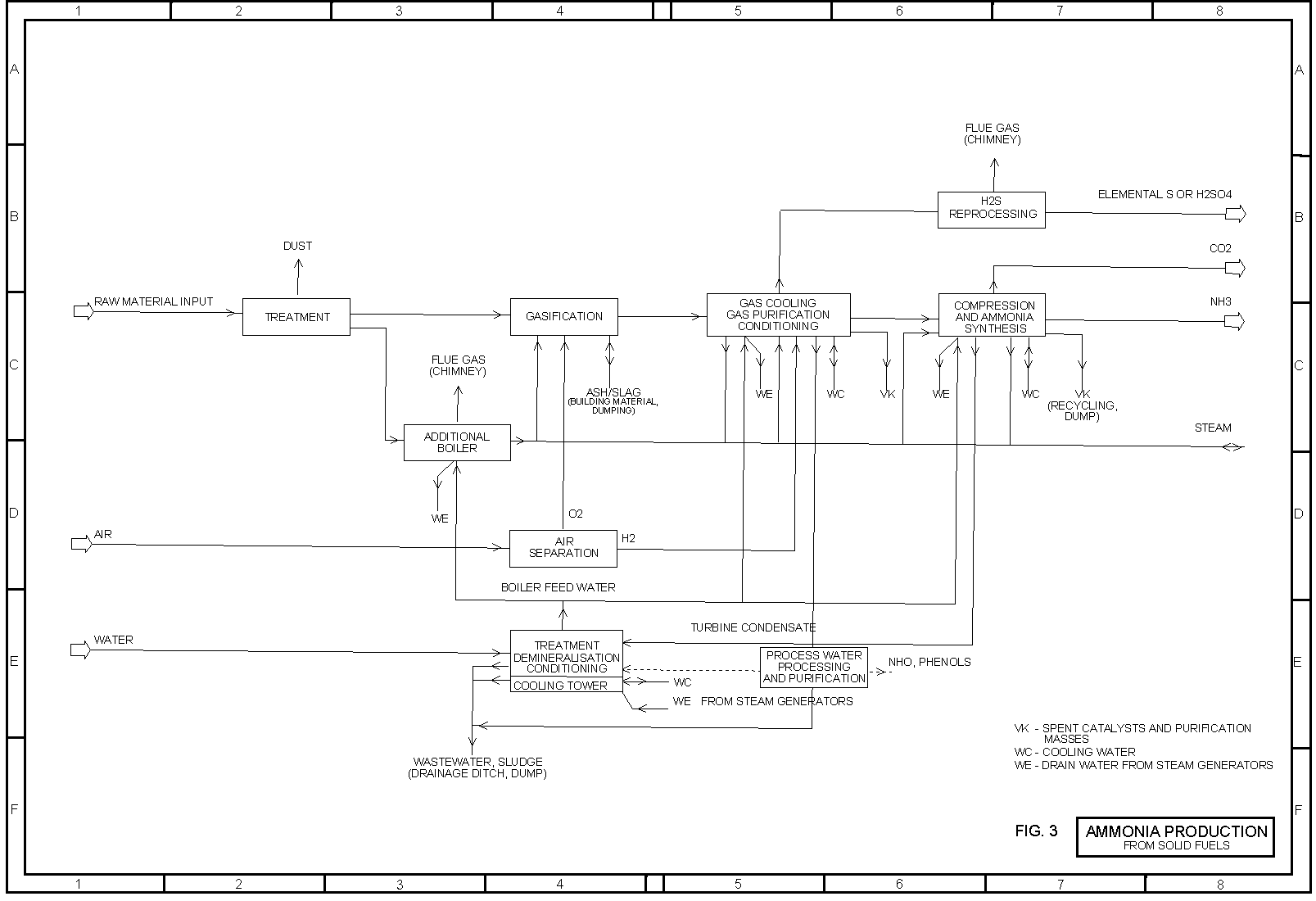 Only wastewater from the demineralisation plant and blow-down water from the cooling water circuit are continuously formed; they must be treated as described in section 2.1.1. The precious metal catalyst for the removal of residual oxygen from the synthesis gas is only replaced at intervals of several years and can be returned to the manufacturer for reprocessing.