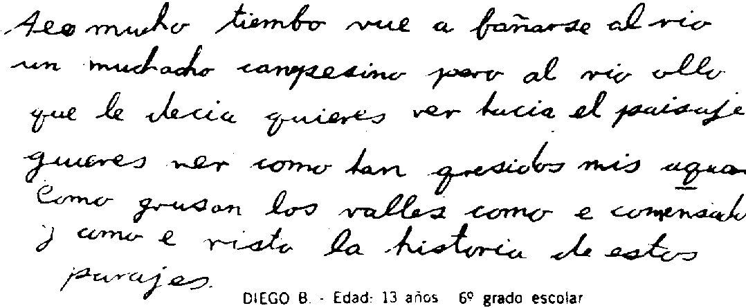 Fig. 1 Ejemplo de dificultades escolares por retardo en la adquisión de la lectura y escritora Nivel de lectura 8-9 años. Edad cronológica: 14 años. Nivel mental normal. (c 1. 108)