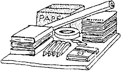 Papel bond., lapiceros, etc.