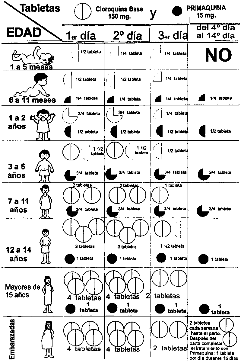 Dosis de Cloroquina y Primaquina por 14 días MALARIA VIVAX