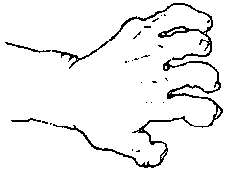 - Puede haber deformaciones y falta de fuerza en las manos y los pies por parálisis de los nervios.