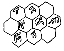 Las obreras se crían en la misma clase de celda que se usa para almacenar la miel y el polen. Este tipo de celda constituye la mayoría del panal en la colonia.