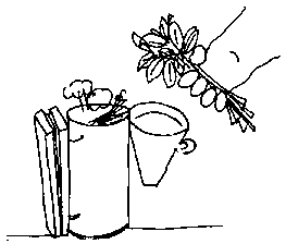 Use el agua del mismo modo que se usa el humo. Moje las abejas a la entrada antes de abrir la colmena, y moje las abejas de cada panal que saca. El agua refresca las abejas y les pesa en las alas lo cual no las deja ni volar ni salir corriendo de la colmena.