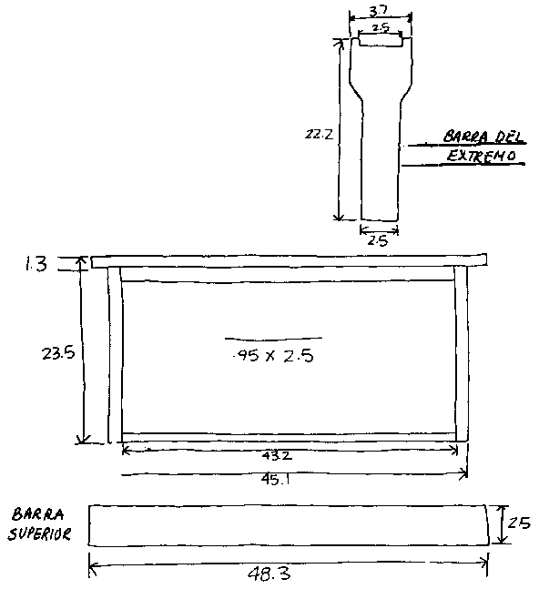 Cuadro para la colmena Langstroth (todas las medidas en cm)