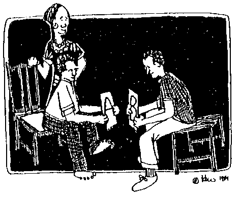 Los maestros se reunen con el adiestrador o entre sí después de la primera clase de alfabetización para revisar y aprender de sus planes de enseñanza y de su experiencia. Se reunen de nuevo después de que las primeras cinco lecciones que prepararon en el adiestramiento han sido completadas. Entonces preparan planes para clases futuras.