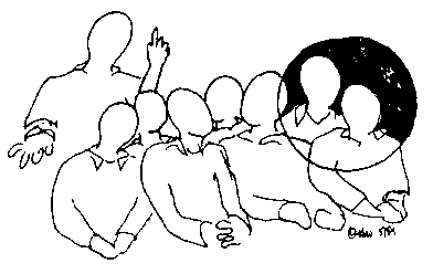 Los adiestradores de los maestros presentan una demostración de la primera lección del programa de alfabetización. Después de la demostración, el grupo se divide en varios grupos más pequeños de tres o cuatro y se les pide que discutan lo que han observado y hagan una lista de cualquier pregunta que tengan. El grupo más grande se reúne de nuevo para que se puedan formular y contestar preguntas. Una persona de cada grupo se designa como portavoz para formular las preguntas y compartir los comentarios de su grupo. De esta forma los maestros tienen la oportunidad de incluirse como partícipes activos en el adiestramiento y comienzan a experimentar lo que significa la enseñanza de la alfabetización.