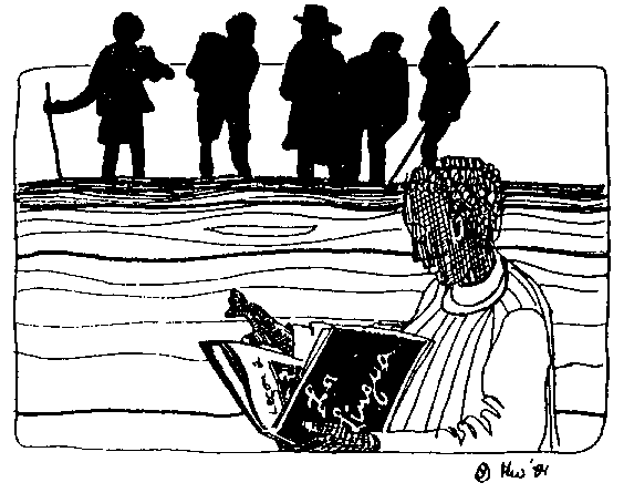 lectura. El círculo, compuesto de los aprendices y otros miembros alfabetos de la