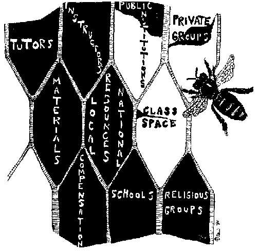 brindando el espacio para las clases y produciendo materiales educacionales. Los
