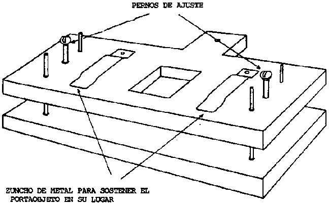 19. Doble los pedazos de zuncho de 9" como se muestra en la Figura 9 y clávelos a la plataforma de la manera indicada. Estas piezas sostendrán el portaobjeto en su lugar.