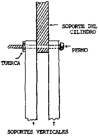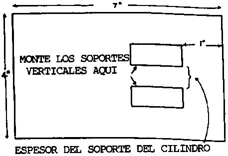 22. Perfore un agujero de 1/4" a través de los dos soportes verticales y el soporte del cilindro de manera que el perno de 1/4" quepa a través de los tres y que el soporte del cilindro gire en su eje (ver la Figura 12).