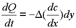 donde dQ es la cantidad que atraviesa un área dy dz en la dirección de x en un tiempo dt donde dc/dx es la velocidad del aumento de la concentración del volumen en la dirección de x.
