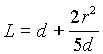 T se expresará en segundos si L está en cm. y g en cm por segundo . Para una esfera suspendida por un alambre de masa insignificante donde d es la distancia desde la arista hasta el centro de la esfera cuyo radio es r, la longitud del péndulo simple equivalente,