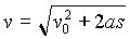Movimiento rectilíneo uniformemente acelerado: Si V0 es la velocidad inicial, vt la velocidad después de un tiempo t, la aceleración,