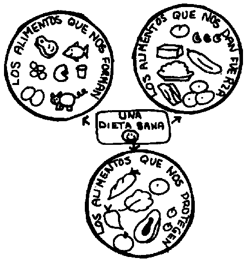Los alimentos que nos dan fuerza son los hidratos de carbono, grasas y azucares. Sirven como leña para un fuego. Dan energía al cuerpo para poder trabajar, caminar y hacer coda clase de actividad y ejercicio. Pero una diera que consiste solamente de comidas de este grupo no es suficiente para el cuerpo.