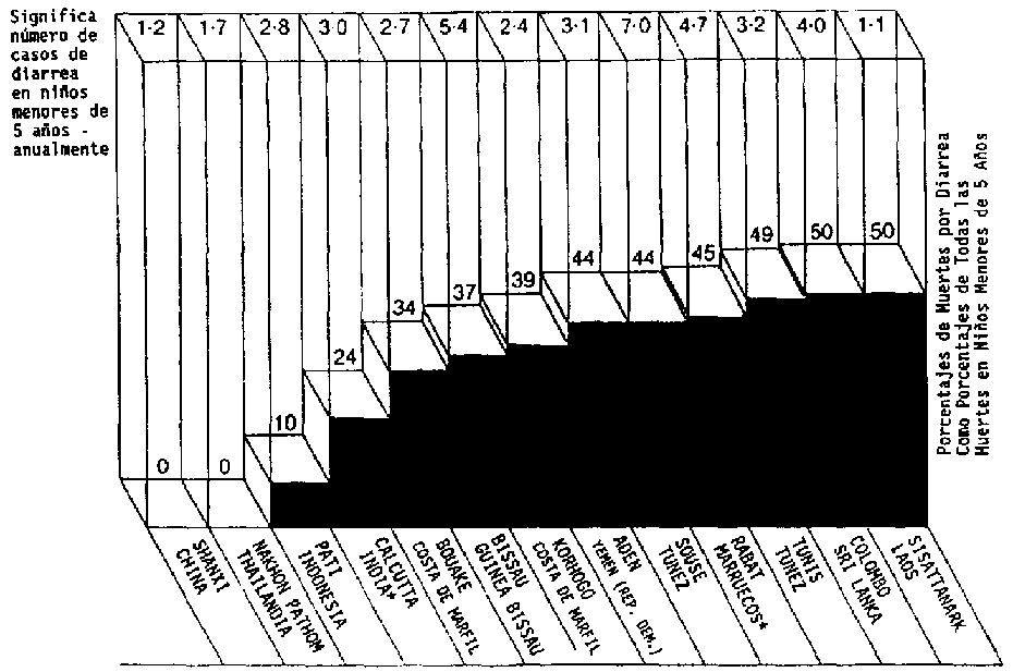 La diarrea por si es tan común en el mundo en desarrollo se estima que 500 millones de niños padecen esta infección, tres o cuatro veces al año - que la mayoría de los padres de familia la consideran como lo más normal en el periodo de crecimiento (vea Figura 1.11). Normalmente, la infección se cura en pocos días, pero en aproximadamente un 10% de los casos, algo empieza a ir verdaderamente niel.