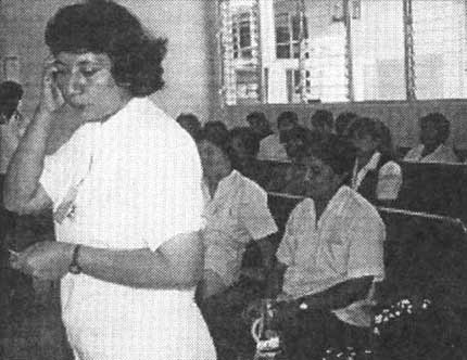 Pensativa Enfermera Luz Marina Olórtegui, Jefa de la Unidad de Capacitación de la DRS, para ponerle la nota respectiva en calidad de atención al C.S. San Juan durante el reforzamiento de AIS.