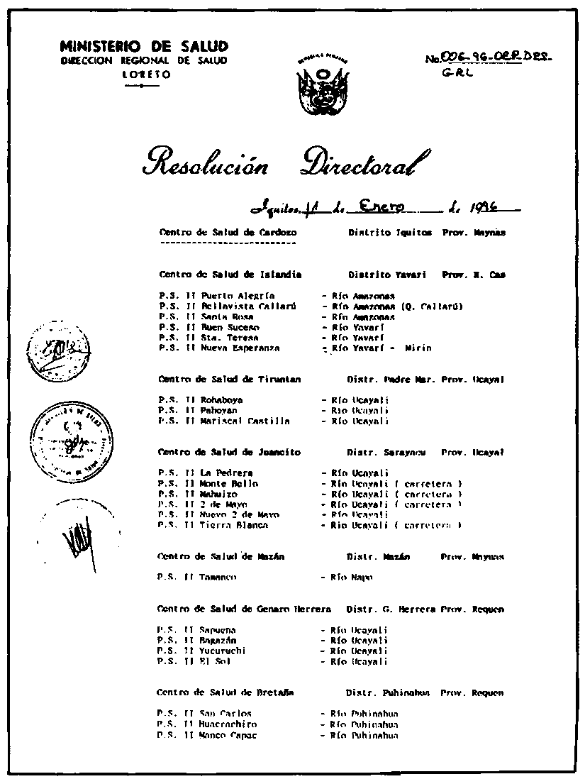 La Dirección Regional de Salud elevó al grado de Centros de Salud a varios establecimientos de Salud.
