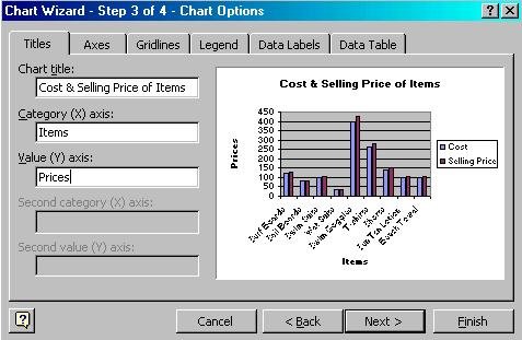 Type the Chart Title, Category for X-axis, and Value for