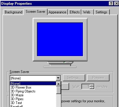 boxes; the current choice is Screen Saver.