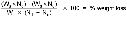 The loss in weight in per cent is calculated using the