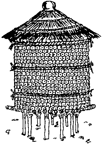 Crops are also occasionally to be found hung up in frames or under the roof of houses. In the latter case, the fire underneath is used to dry them and to repel insects.