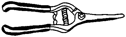 Pruning shears are often used for harvesting fruits, some vegetables, and cut flowers. A variety of styles are available as hand held or pole models, including shears that cut and hold onto the stem of the cut product. This feature allows the picker to harvest without a catching bag and without dropping fruits.
